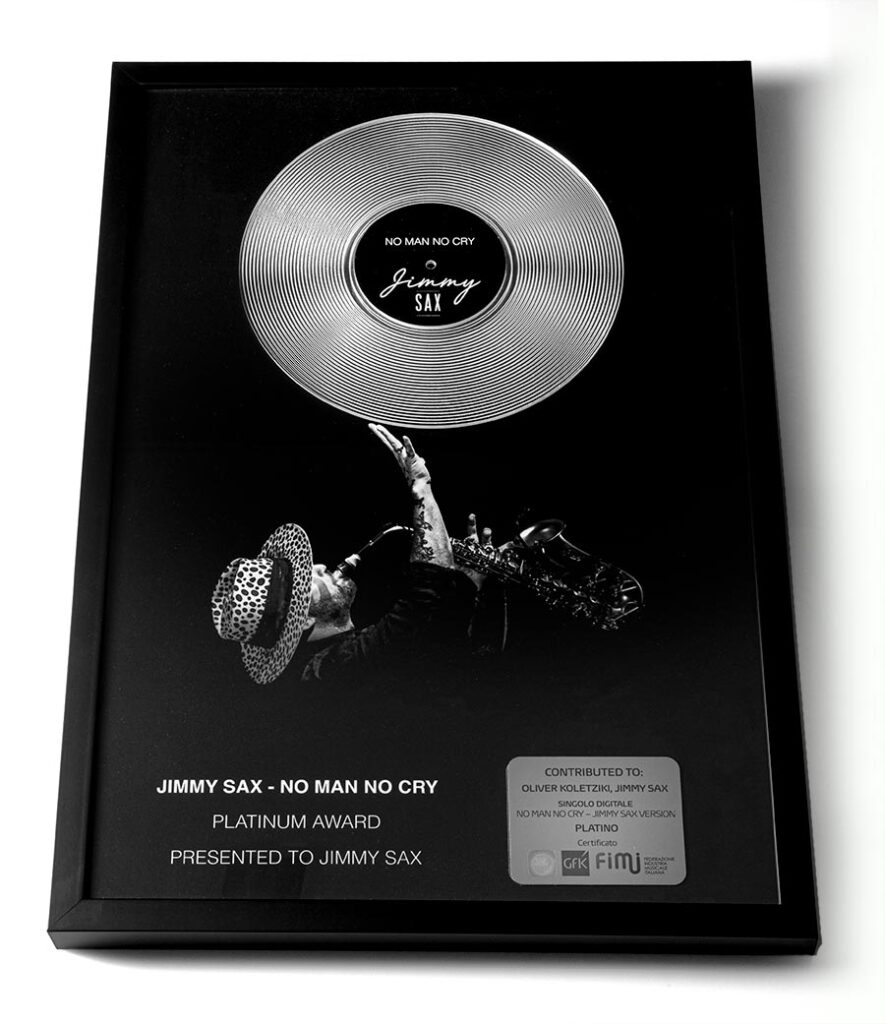 Realizzazione del Disco di Platino per “No Man No Cry” di Jimmy sax